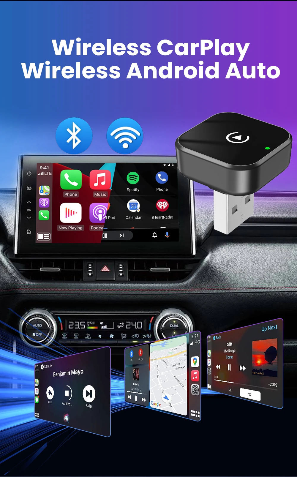 Der PLAYAIBOX Wireless Adapter verwandelt dein kabelgebundenes CarPlay- oder Android Auto-System in eine kabellose Verbindung – einfach, schnell und zuverlässig. Kein lästiges Einstecken mehr: Steig ein, dein Smartphone verbindet sich automatisch via WiFi & Bluetooth mit deinem Fahrzeug.