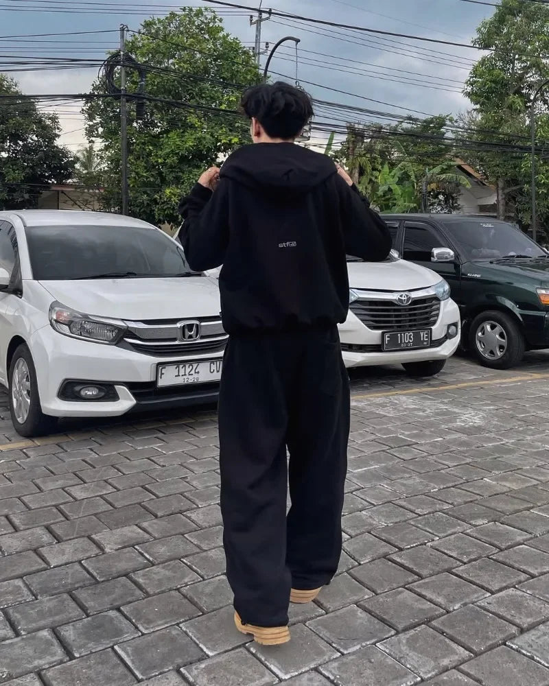 Das 2-teilige Set besteht aus einer Oversized Kapuzenjacke mit Reißverschluss und einer weiten Jogginghose – verziert mit markantem Graffiti-Print auf Brust und Hosenbein. Perfekt für Streetstyle, Freizeit oder lässige Outfits.