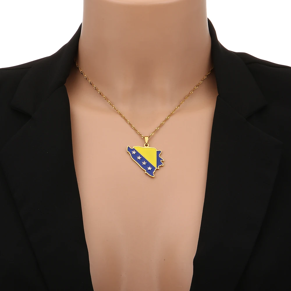 Zeige stolz deine Herkunft und Liebe zu Bosnien & Herzegowina mit dieser einzigartigen Landkarten-Halskette!