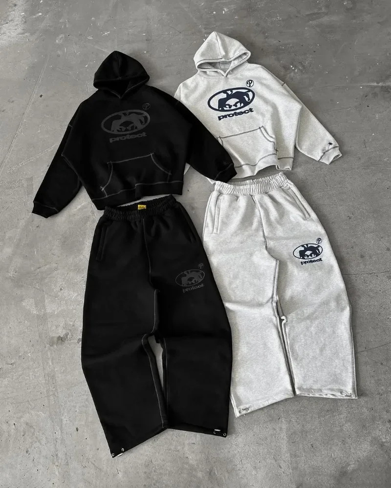 Printed pants with a hooded cardigan set American rock loose sweatshirt Y2K vintage letter long pants with hooded long sleeves