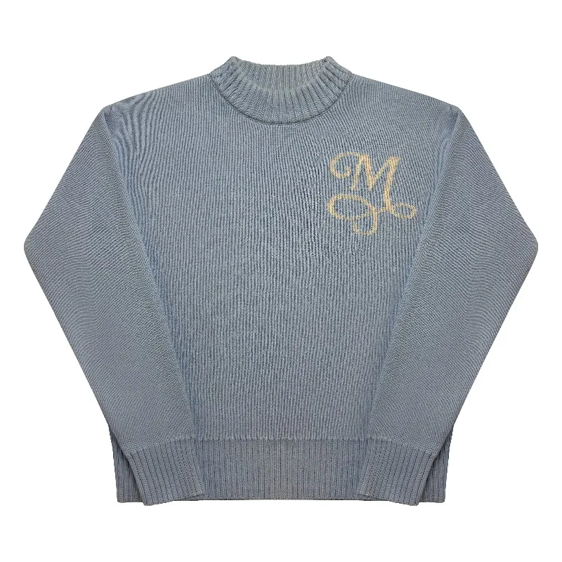 Der Pullover „M-Initial“ überzeugt mit einem minimalistischen, modernen Design und einem eleganten Stick-Detail. Das zarte Hellblau sorgt für einen frischen, cleanen Look, während das eingestickte „M“ in Weiß auf der Brust dem Pullover einen edlen Akzent verleiht. Ideal für den Alltag oder lässige Freizeit-Outfits.